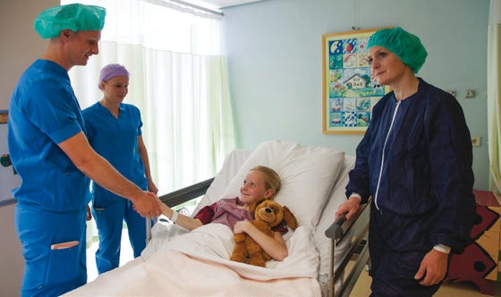 - Eén van je ouders en de medisch pedagogisch zorgverlener of verpleeg kundige doen operatie-kleding over hun eigen kleding. Zo blijft alles schoon in de OK.