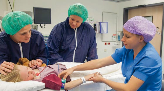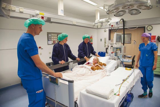 - Jullie wachten in de holding totdat de medewerker van de operatiekamer jullie komt ophalen. Je kunt hem herkennen aan een blauw pak en een muts. Als je gegevens nog een keer gecontroleerd zijn, en je eventuele vragen beantwoord zijn, ga je met één van je ouders en de medisch pedagogisch zorgverlener of verpleegkundige naar de operatiekamer.
