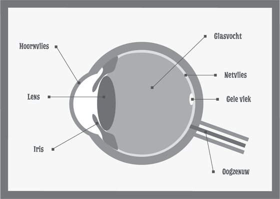 In het midden van het netvlies zit de ‘gele vlek’. Een ander woord is macula lutea. Deze vlek zorgt ervoor dat we hele kleine dingen kunnen zien.