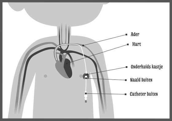 • Als je veel en vaak medicijnen, vocht of voeding moet krijgen door een infuus.