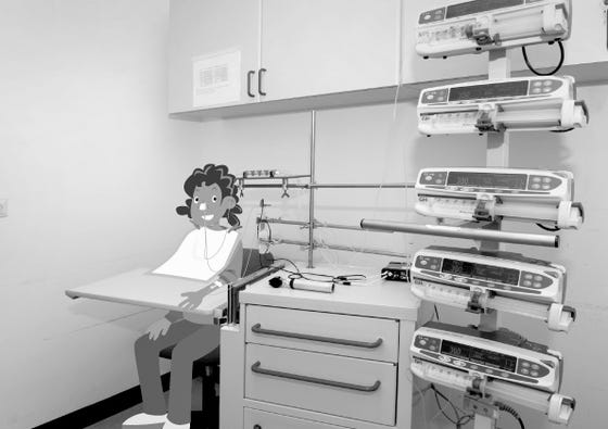 • een soort batterij, die is aangesloten op het naaldje dat je onder je huid in je arm krijgt.
