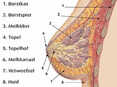 De melk wordt in de melkklier in de borst gemaakt. Vanuit de melkklier loopt de melk via kleine kanaaltjes naar de tepel. In de tepel zitten verschillende openingen waar uit de melk komt.