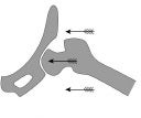 De kikkerhouding, die verkregen wordt, zorgt dat de heupkop midden in de kom staat. Door druk van de kop zal de kom dieper worden.