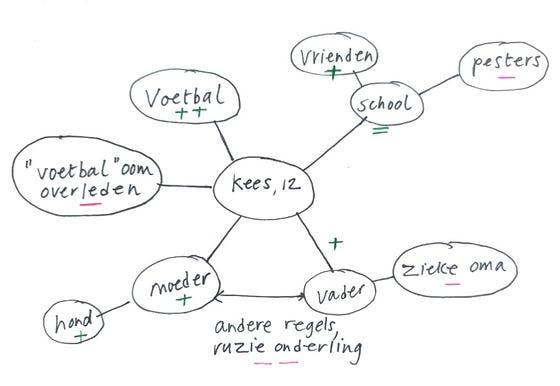 “Ik vond het fijn om met de bolletjestekening een gesprek te voeren. Het gaf mij overzicht.”