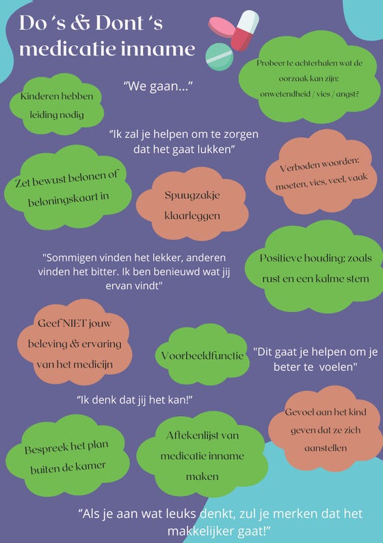 Thuis uw kind medicijnen laten innemen, kan een extra belasting zijn naast uw dagelijkse opvoedtaken. Het is daarom belangrijk om van te voren te bedenken hoe dat voor alle betrokkenen zo goed mogelijk kan verlopen. Hieronder wat tips die u kunnen helpen.