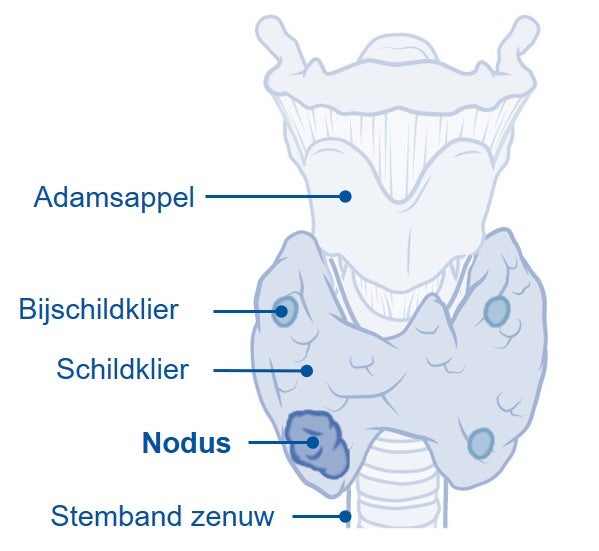 Meer informatie over de diagnostiek en behandeling van een (goedaardige) schildkliernodus is te vinden in de folder 'een knobbel (nodus) in de schildklier bij kinderen'.